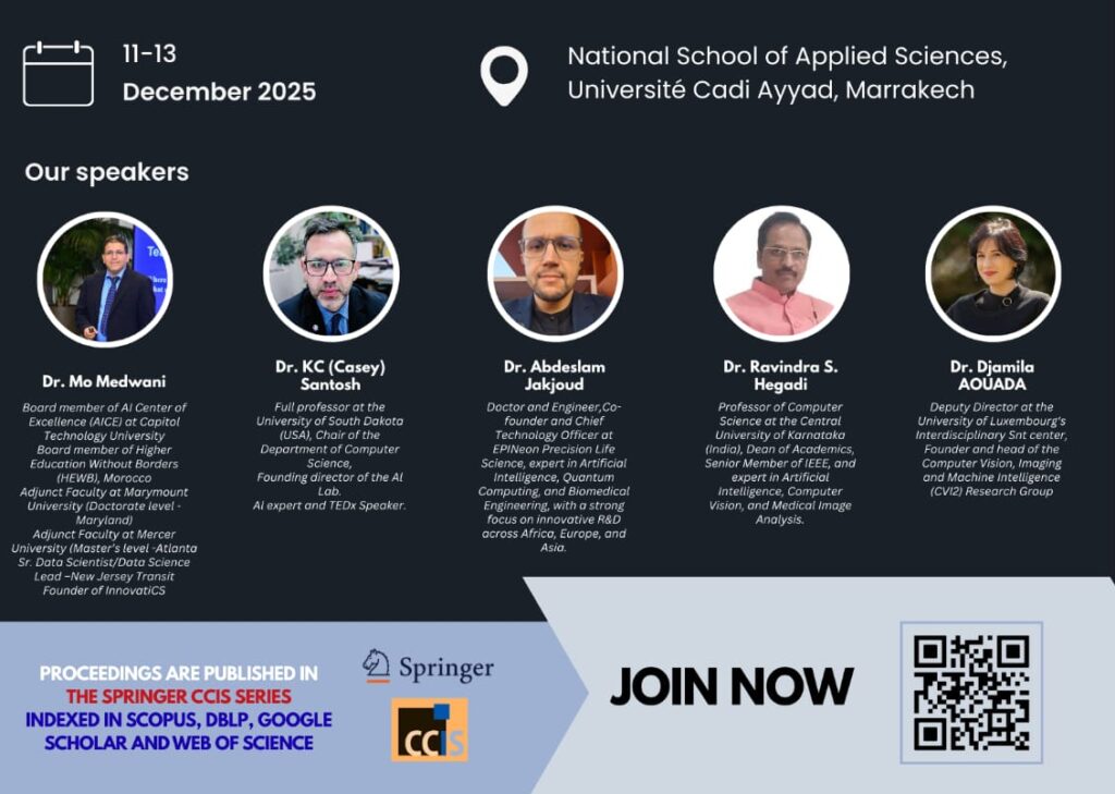 It is with immense pleasure that we announce that ENSA Marrakech will host the 8th edition of RTIP2R from December 11 to 13, 2025, a global forum dedicated to recent advances in image processing, pattern recognition, artificial intelligence, and emerging technologies.